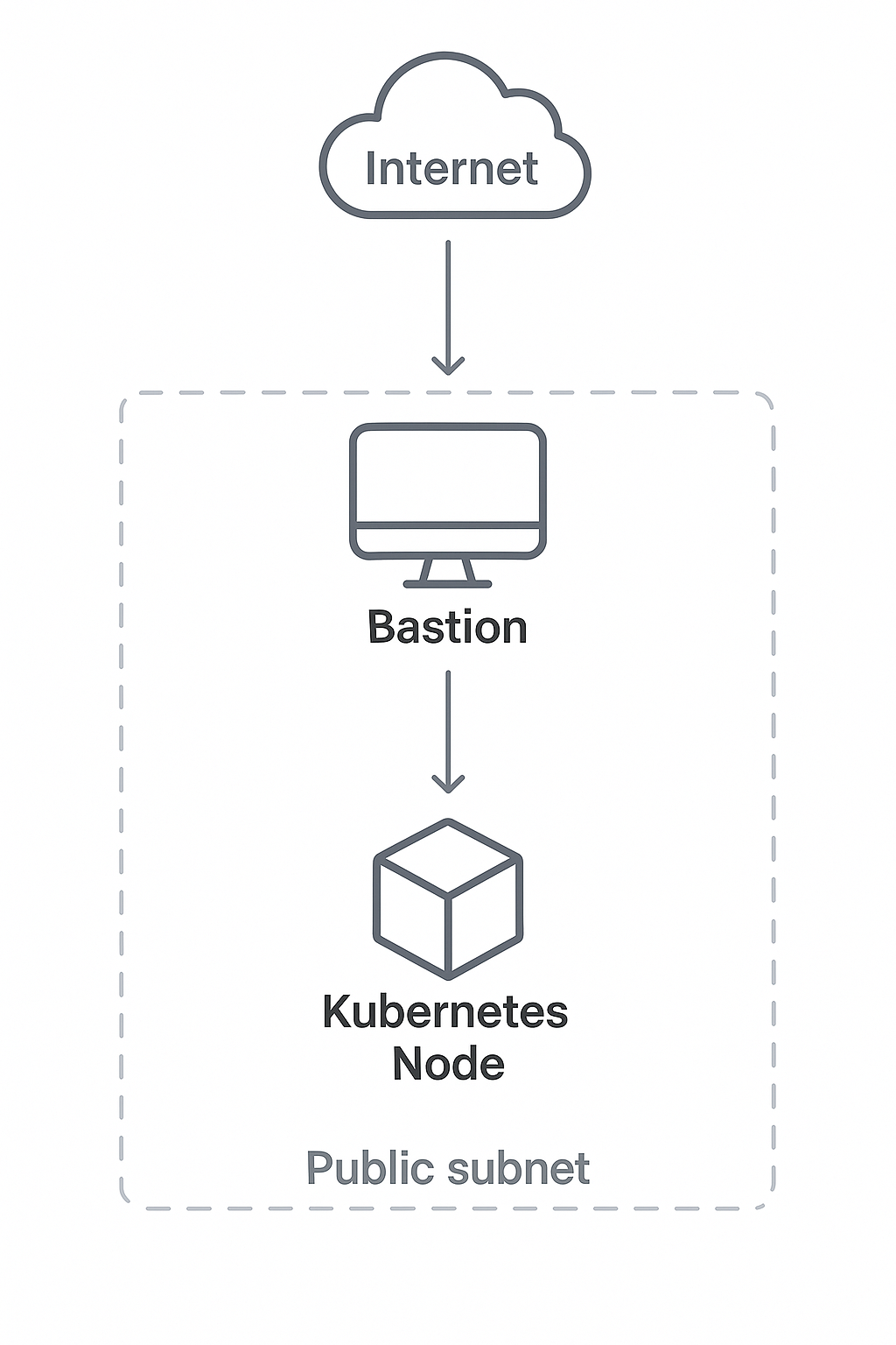 쿠버네티스 클러스터가 프라이빗 서브넷에 있고, 퍼블릭 서브넷에는 Bastion 서버만 배치되어 있는 구조를 생각해볼 수 있습니다.
